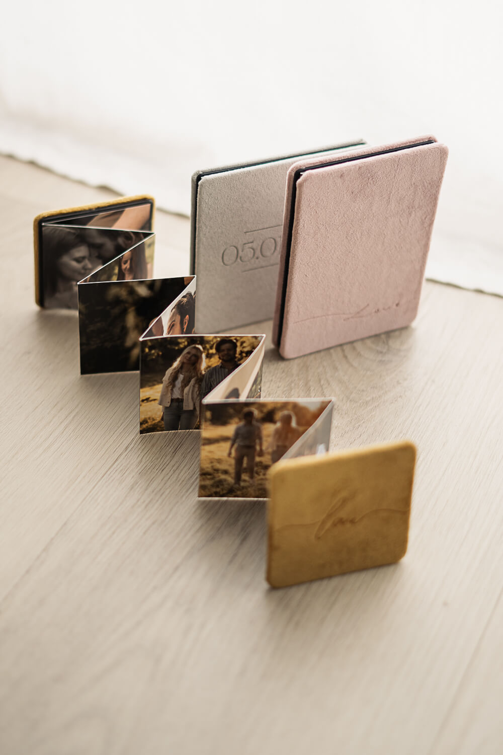 So klein und doch so großartig. Das Mini-Leporello gibt es in drei verschiedenen Größen und es kann bis zu 18 Seiten umfassen. Es eignet sich ideal zum Verschenken oder als kleine besondere Erinnerung für euch selbst. Außerdem ist es magnetisch und kann somit auch auch am Kühlschrank o.ä. haften. Es gibt 10 verschiedene Einbandfarben und eine Vielzahl an personalisierbaren Gravuren zur Auswahl.