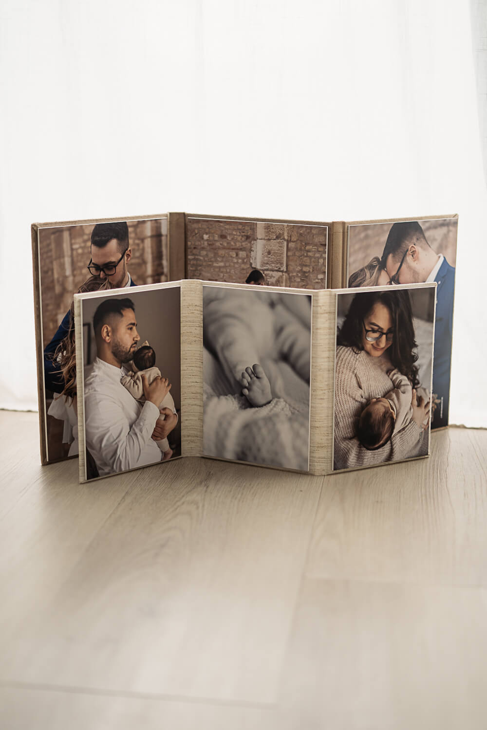 Ein dreiteiliger Fotoaufsteller von höchster Qualität, zum Aufstellen oder Aufbewahren eurer liebsten Erinnerungen. Es sind viele verschiedene Größen und Einbandstoffe verfügbar. Eignet sich ideal als Geschenk oder zum Aufstellen im eigenen Zuhause. Ich berate euch gerne.